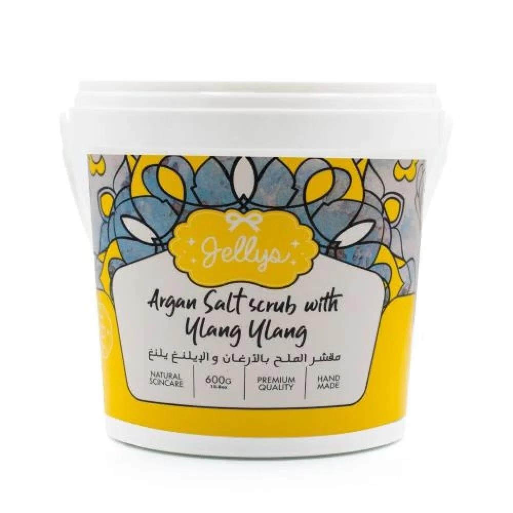 مقشر الملح فاخر يجمع بين قوة الملح الطبيعي وزيت الأرغان المرطب وزهرة الإيلنغ يلنغ العطرية.