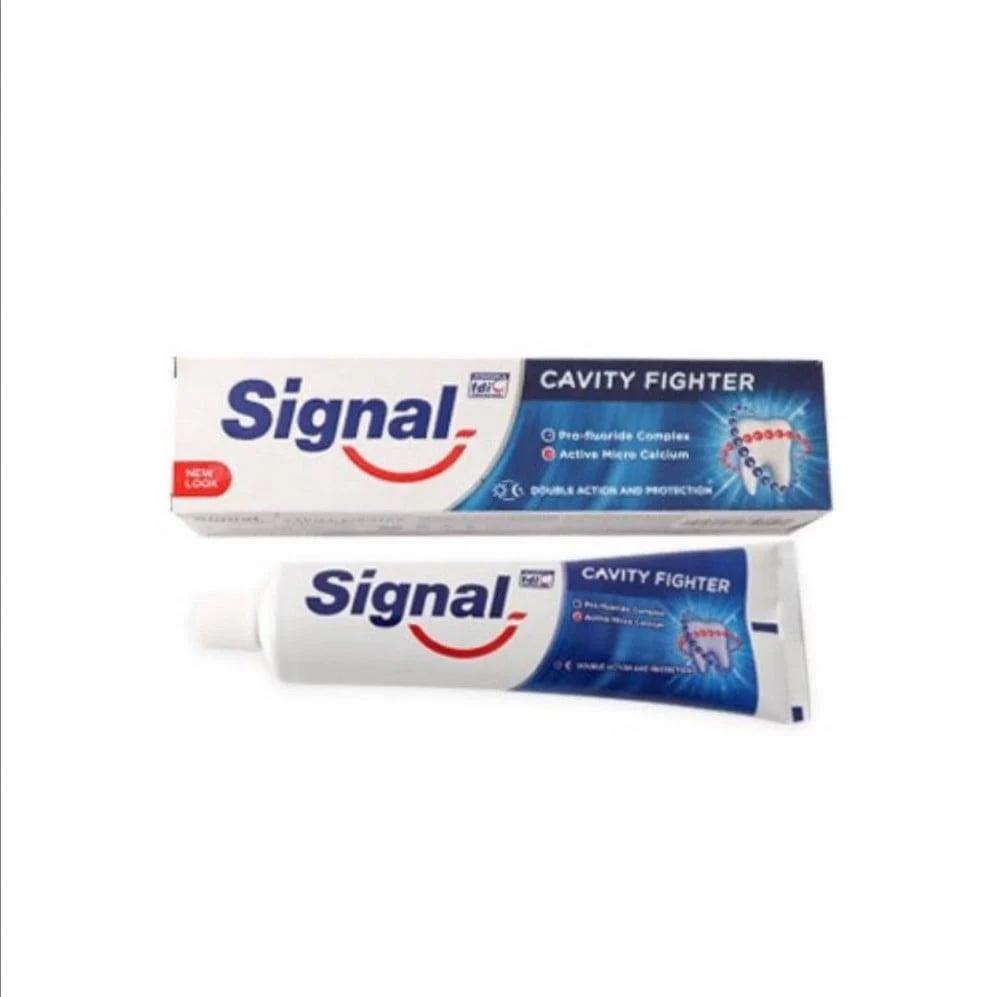معجون الأسنان سيجنال مكافح التسوس – 75 مل هو منتج فعّال من علامة Signal الشهيرة، مصمم خصيصًا لحماية الأسنان من التسوس وتعزيز صحة الفم بشكل يومي. يجمع بين تركيبة غنية بالفلورايد ومكونات تنظيف دقيقة تمنحك ابتسامة صحية ومنتعشة.