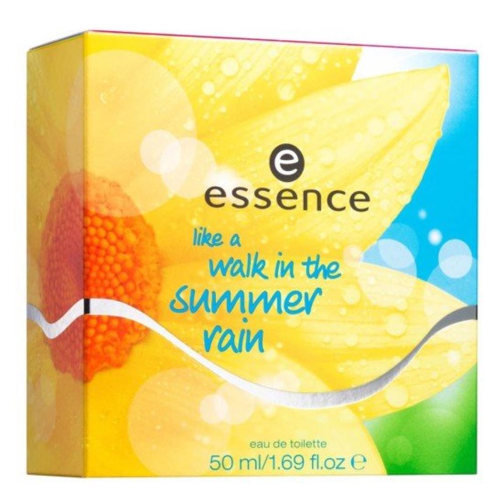 عطر Like a Walk in the Summer Rain من إيسينس هو عطر زهري - مائي للنساء. Like a Walk in the Summer Rain تم إصداره عام 2012. مقدمة العطر البطيخ، الليمون، الألدهيدات، البرتقال و بخور مريم؛ قلب العطر مياه البحر, زنابق الوادي, فريزيا و رائحه الزهور; قاعدة العطر تتكون من أخشاب الأرز وطحلب السنديان والمسك.