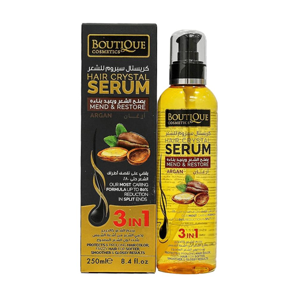 سيروم الشعر كريستال أرجان من بوتيك – 250 مل، الذي يُعد خيارًا مثاليًا للشعر الجاف والمجعد: