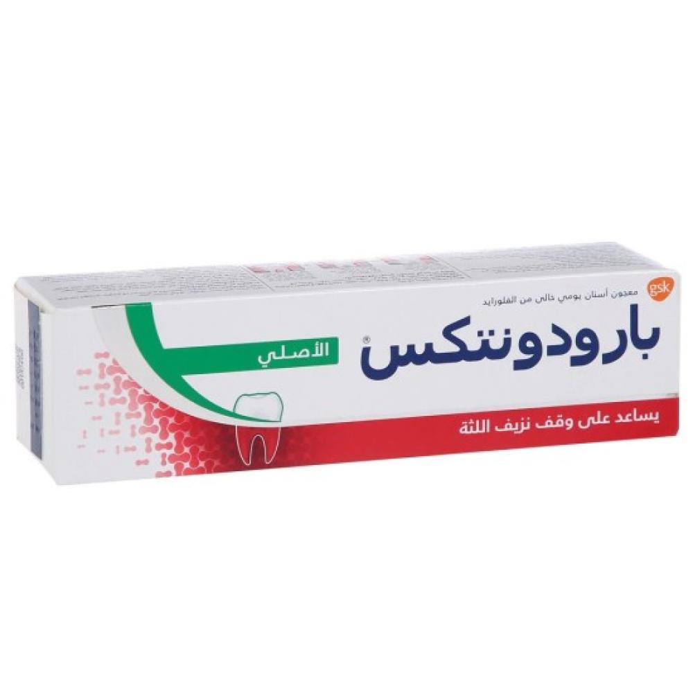 لا يحتوي معجون أسنان بارودونتكس الأصلي على الفلورايد يرجى استشارة طبيب أسنانك في حالة الاستخدام المستمر