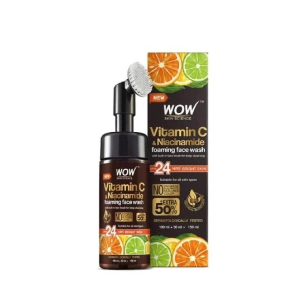 غسول الوجه الرغوي بفيتامين سي لتفتيح البشرة من WOW Skin Science يأتي مع فرشاة وجه مدمجة لتقشير لطيف وتنظيف عميق.
