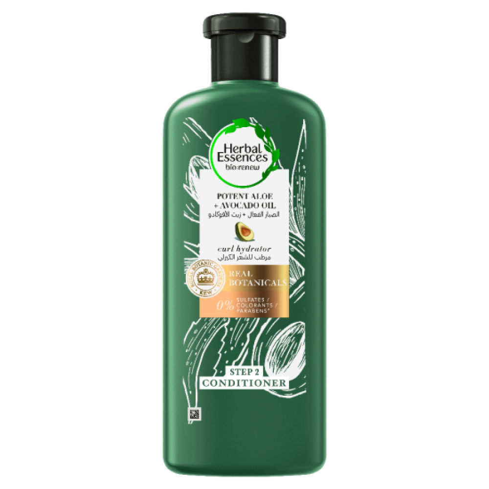 بلسم هيربال لترطيب الشعر الكيرلى يحتوى على الصبار والافوكادو لتزويد تموجات الشعر الكيرلى بعناصر غذائية مستمدة من مكونات نباتية حقيقية.