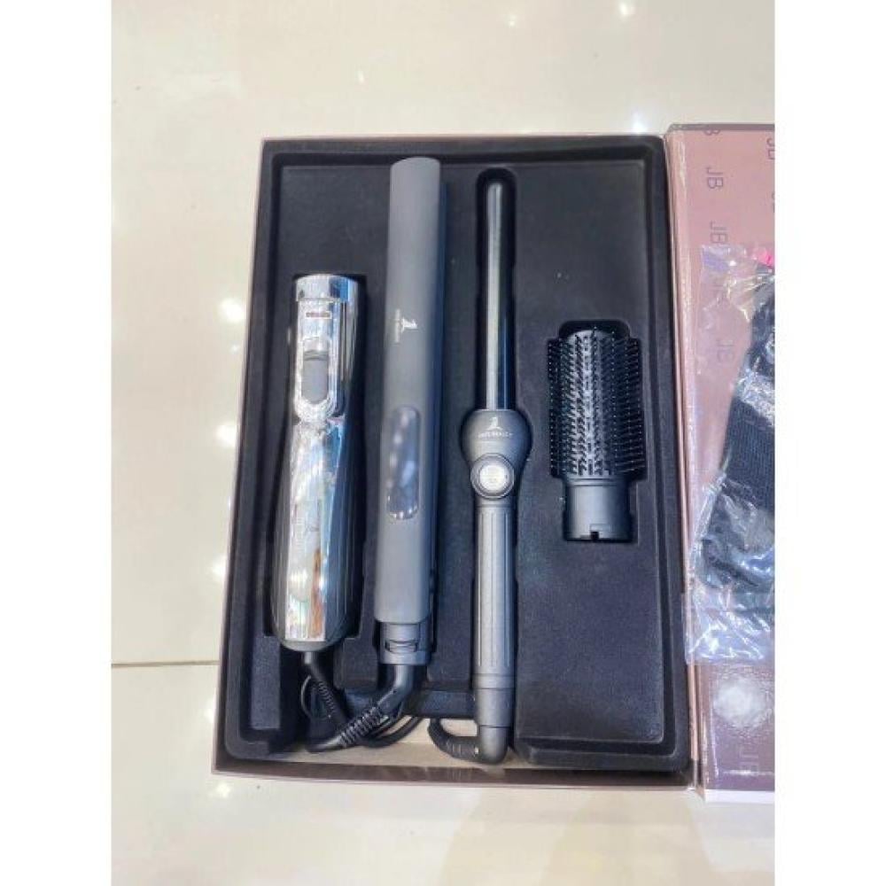 - اسم المنتج: طقم ثلاثة استشوارات 1-استشوار مشط 1200واط 2-مملس شعر 50واط 3-مكواة تجعيد الشعر 50واط