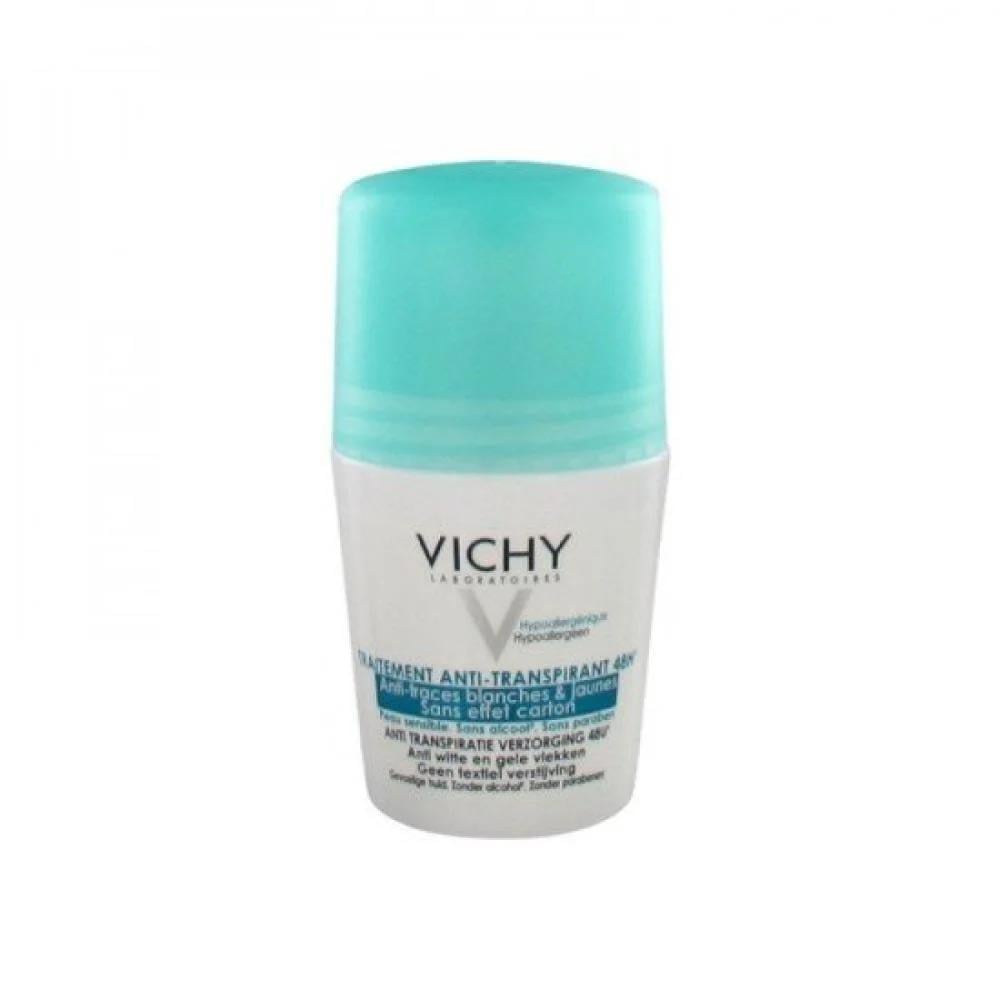 استمتع بحماية تدوم حتى 48 ساعة مع مزيل العرق المضاد للبقع من فيتشي، الحل المثالي للحفاظ على الانتعاش دون القلق من العلامات البيضاء أو الصفراء على الملابس الفاتحة والداكنة.