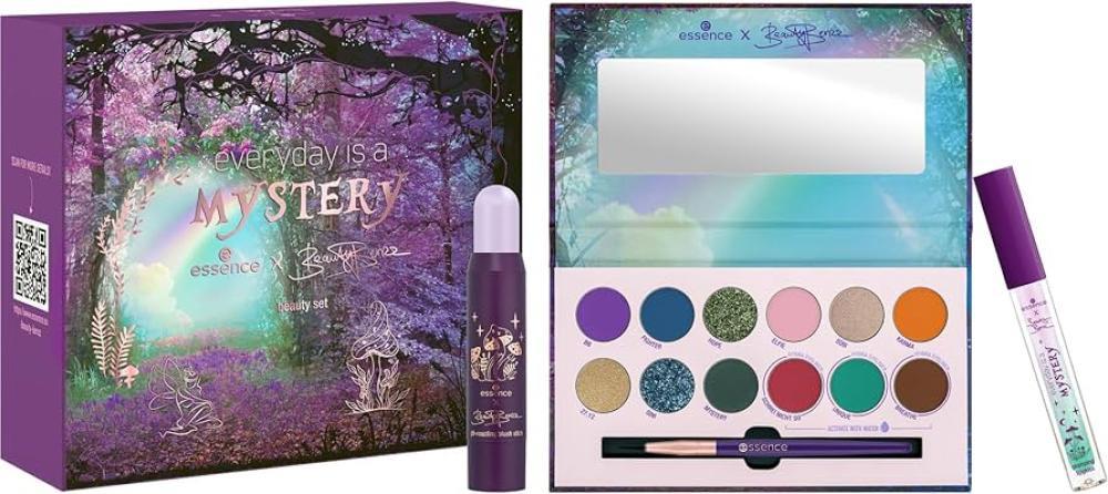 لوحة ظلال عيون تتضمن محدد عيون، أحمر خدود متفاعل مع درجة الحموضة، وملمع شفاه.أساسيات تجميل العيون، الخدود، والشفاه.