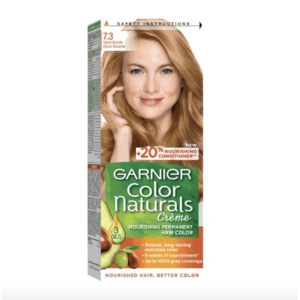 غارنييه صبغة للشعر مغذية تغطي 100٪ من الشعر الرمادي، ببلسم غني بزيت الأفوكادو، زيت الزيتون وزبدة الشيا لترطيب ولمعان يدوم حتى بعد التلوين.